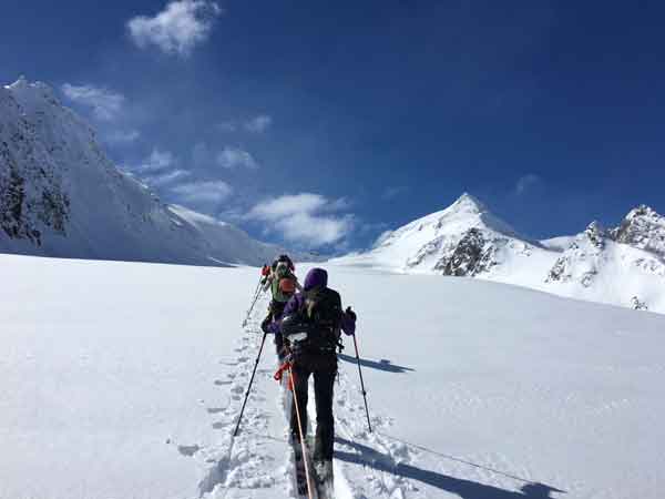 hinunter. Oben am Gletscher herrlicher Pulver.