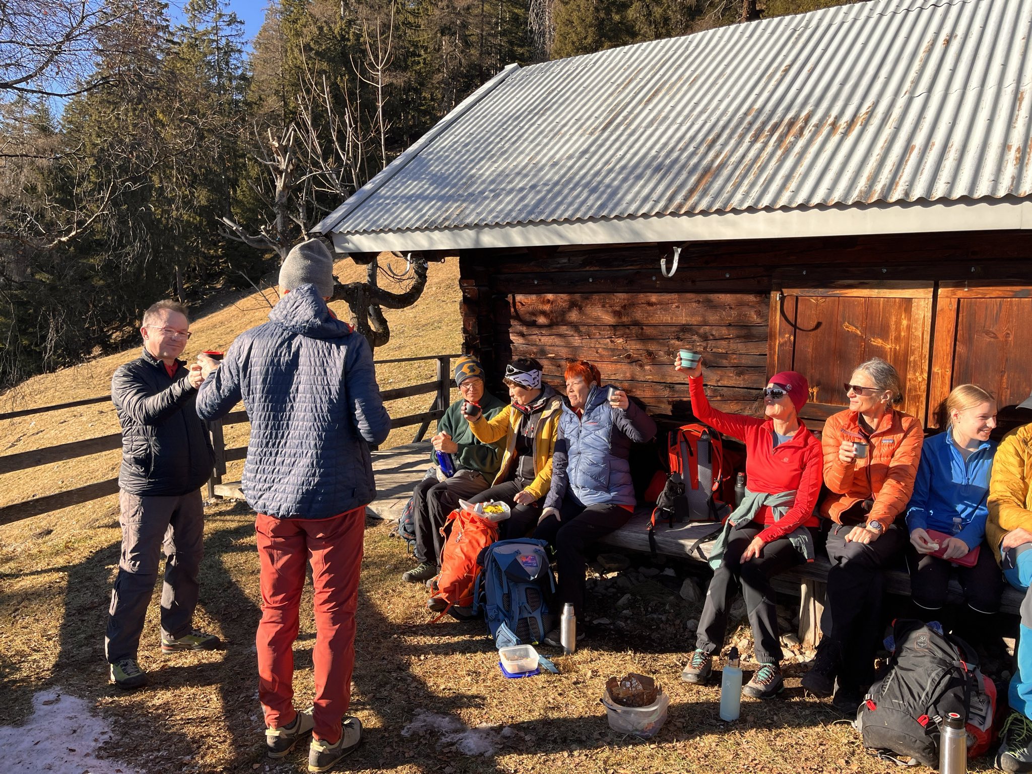 Für die gemütliche Gipfelrast mit Neujahrs-Sekt wurde