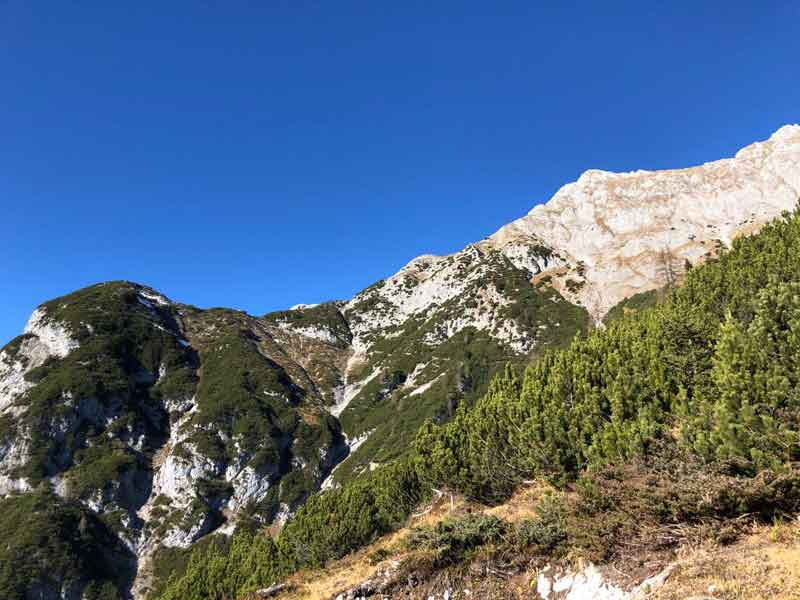 der Ehrwalder Alm schauen wir hinauf zum Grünstein und der