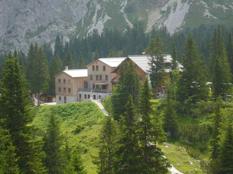 Die Lindauerhütte liegt gerade noch bei den obersten Bäumen an der Waldgrenze.