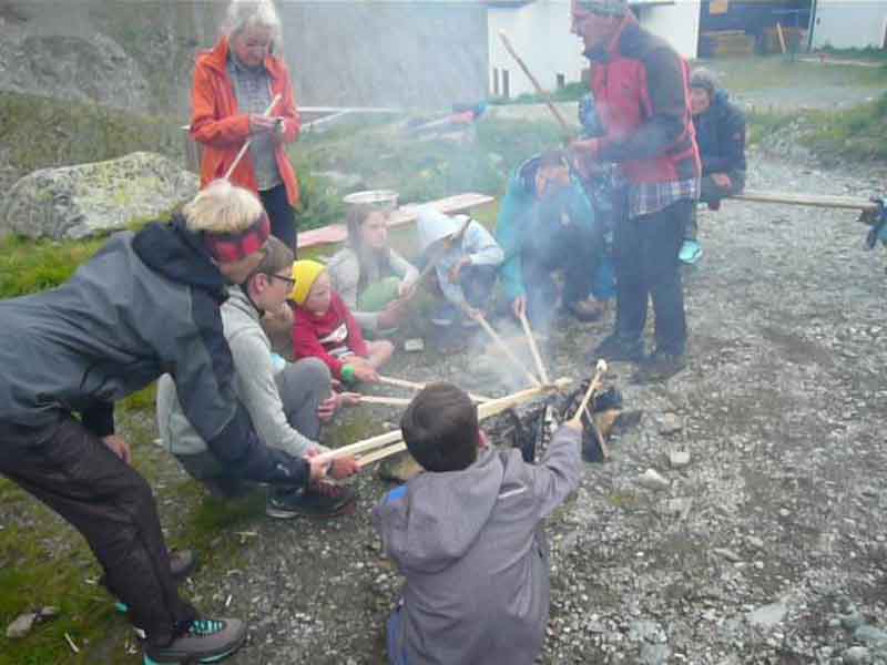 Für die Kinder durfte einmal vor der Hütte ein Grillfeuer angezündet werden